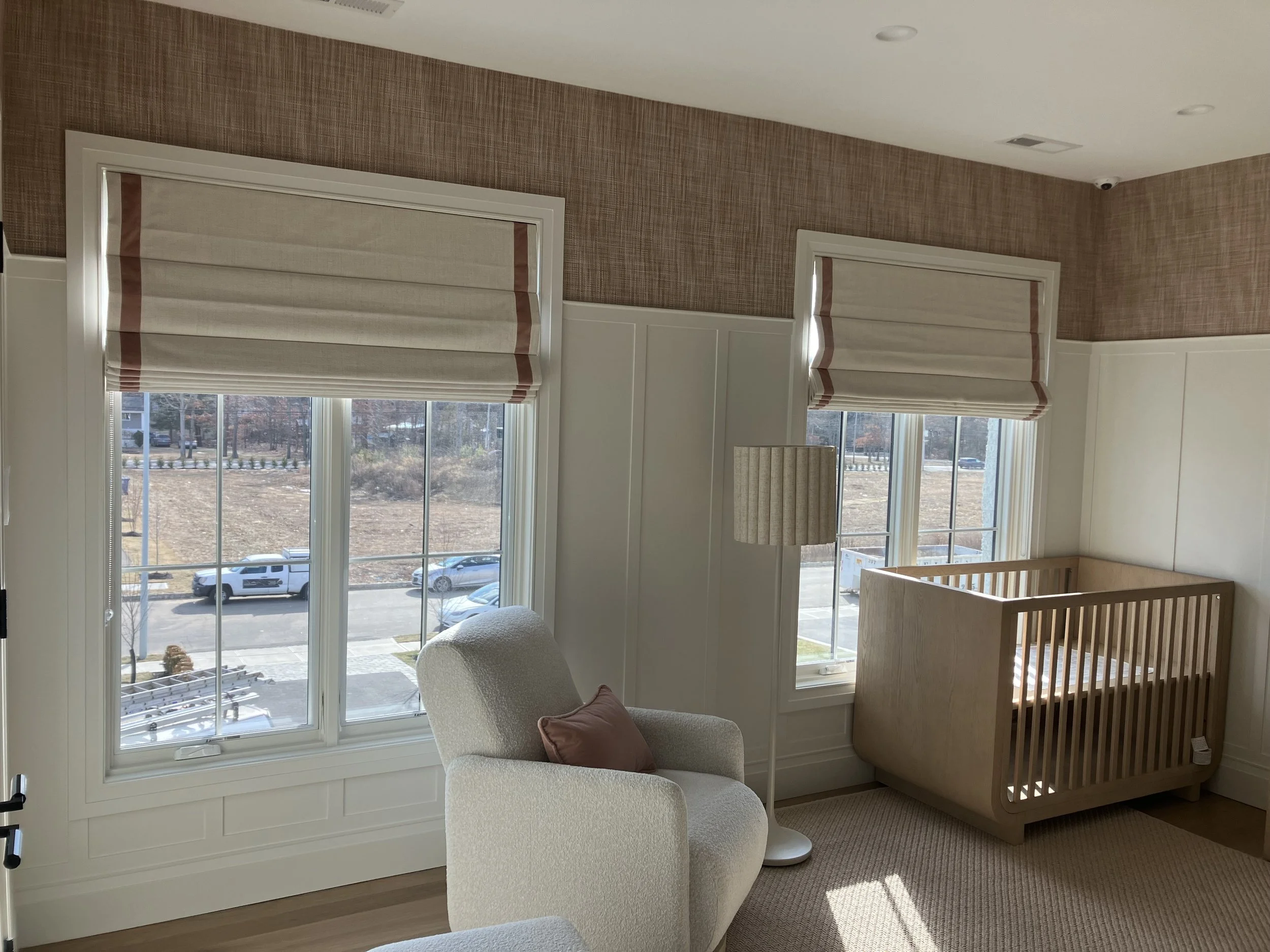 Roman shades blend the softness of fabric with a clean, structured design. Their neat folds add warmth and texture, while custom materials offer light filtering or blackout control for a classic, tailored finish.