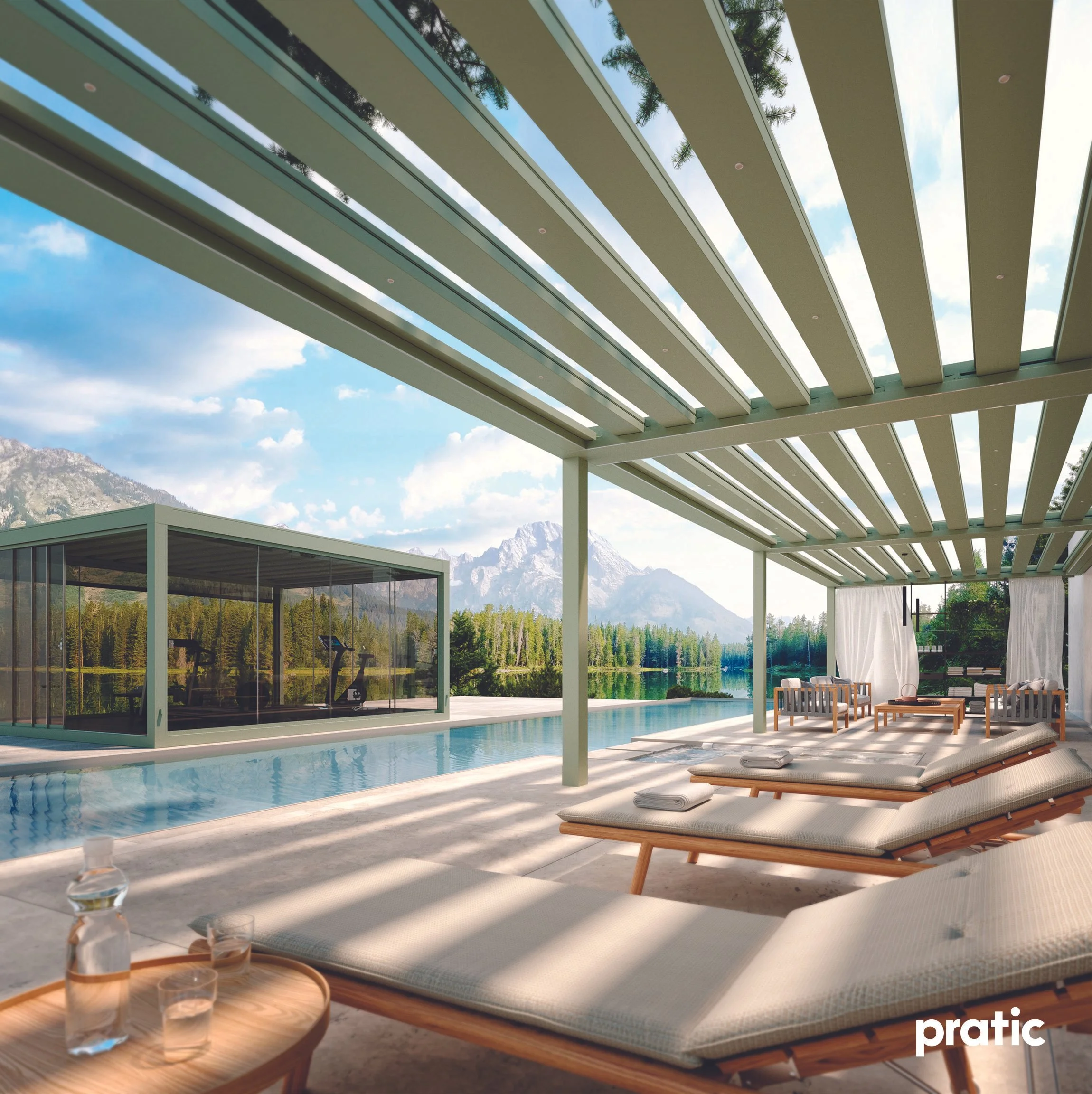 Our pergolas transform outdoor spaces into refined, year-round environments. With rotating louvers or retractable fabric canopies, they offer a balance of design and function.